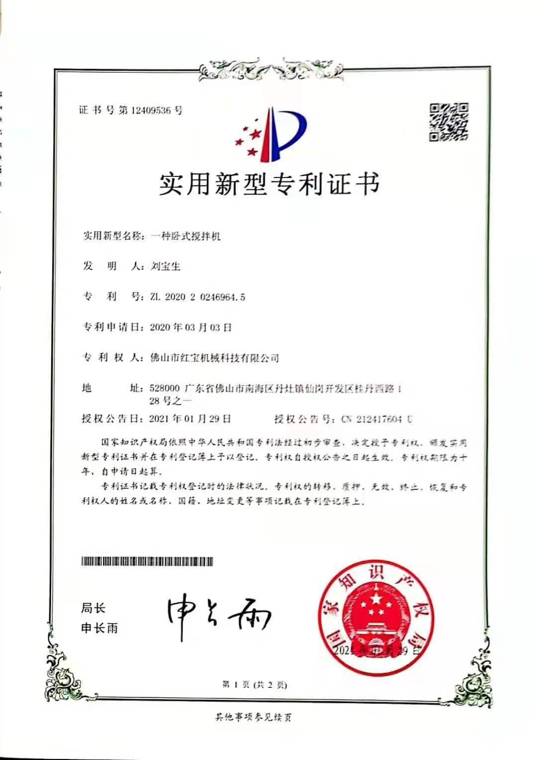 佛山紅寶機械立式塑料拌料機攪拌機專利